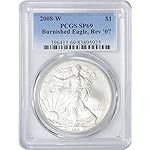 2008-W $1 American Silver Eagle Burnished Opposite of 2007 SP69 PCGS