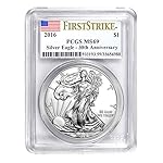 The Silver American Eagle is well known and universally revered, containing 1 oz of .999 fine Silver and featuring a good looking, classic design. The Silver Eagle is the one 1 oz Silver bullion coin produced in the USA. Coin Highlights: PCGS encapsulation protects and guarantees the close to absolute best MS-69 condition of the coin. The First Strike label guarantees this coin used to be received by PCGS inside the first 30 days of the coin’s unencumber. Multiples of 20 are packaged in PCGS boxes. Obverse: Adolph A. Weinman’s design showing Lady Liberty draped in an American flag, walking gracefully as the sun rises over a ridge. Reverse: A heraldic eagle is shown below 13 small stars, representing the unique colonies. Sovereign coin backed by the U.S. government.