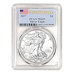 The Silver Eagle is the preferred and recognizable Silver coin on this planet. The coin has been graded by PCGS, certifying its authenticity. Coin Highlights: Accommodates 1 oz of .999 fine Silver. PCGS encapsulation protects the coin, and serves as a universally-recognized guarantee of the coin’s authenticity. This coin is the First Strike label, so It was once dispatched from the mint inside the first 30 days of the coin’s free up. Obverse: Adolph A. Weinman’s design showing Woman Liberty draped in an American flag, walking gracefully because the sun rises over a ridge. Reverse: A heraldic eagle is shown under 13 small stars, representing the unique colonies. Sovereign coin backed by the U.S. government.