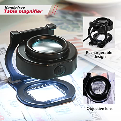 EASY TO TURN ON/OFF – Just Press down the soft silicone button to turn on the 4 white lights for on a regular basis magnified commentary, and press again to 2 UV lights for the money detector magnifier. Press the third time to turn off the light. This small jeweler’s loop will be a good helper at work.