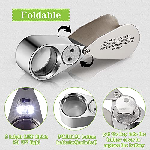Bright LED and UV Light: the illuminated jewelry loop magnifier is designed with LED and UV light, which you’ll be able to see objects clearly in dark or insufficient light conditions with it, so you’ll be able to use it anywhere