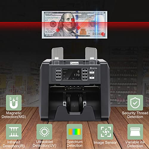 ✅ Reliable Counterfeit Detection & Business Guard: Mixed denomination cash counting machine has more than a few counterfeit detection methods to make sure your bills’ authenticity. CIS, UV, MG, IR, MT, RGB light source checks every security feature on banknotes, effective against superdollar.