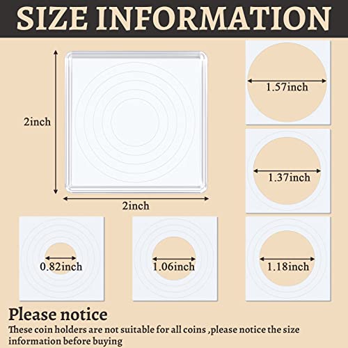 Detailed Information About Size: coin collection supplies are equipped with 5 different sizes’ gaskets in white color, including 0.82/1.06/1.18/1.37/1.57 inches; The outer size is approx. 2 x 2 inches/ 50 x 50 mm, befitting for depositing coins; Note: not suitable for all coins, please note the size before purchase