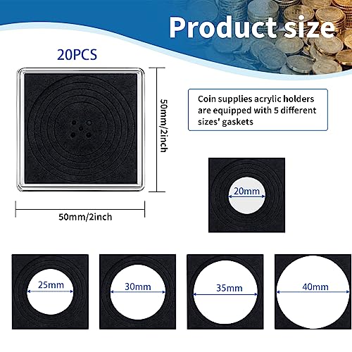 Fansunta 20 Pcs Adjustable Acrylic Coin Collection Cases with Sponges, Coin Snap Holder, Silver Dollar Protection Cases for Collectors, Coin Dollar Bill Collection Supplies(20mm, 25mm, 30mm, 35mm, 40mm)