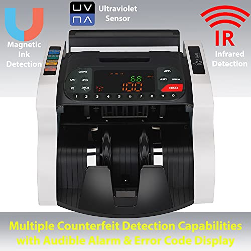 [Powerful & Quiet]: Capable Of Working Continuous For Hours At the same time as Counting 1000 Bills Per Minute. Ultraviolet (UV), Magnetic (MG) And Infrared Sensors Is helping to Detect Counterfeit Bills. This Money counter Operates With Noise Levels Less Than 60 dB.