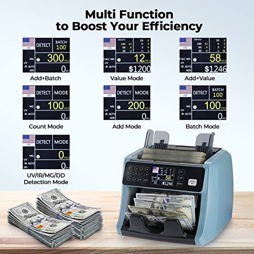 [Multiple Mode] Add Mode- Money counter machine will add the total selection of counting bills. Batch Mode- In this mode, the bill counter machine will count bills in the setted batch of your choice. Meet your need in sorting bills in particular number per batch. Add+Batch Mode- Sort the bills in batch whilst adding the total number.