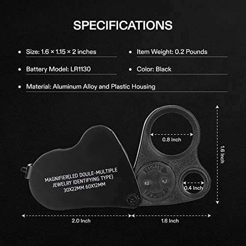 Double Lenses: Equipped with two separate lenses for different degrees of magnification; The main lense is 30x22mm, and the supplementary one is 60x12mm; Each and every lense has appropriate use