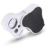 BRIGHT 2 LED LIGHTS and an UV Light :This Jewelers loupe is equipped with 2 white lights and an UV light; It is perfect for shining the right amount and angle of light for your use. LED lights provide good illumination for clarity; The UV light can be utilized to identify the authenticity of banknotes.